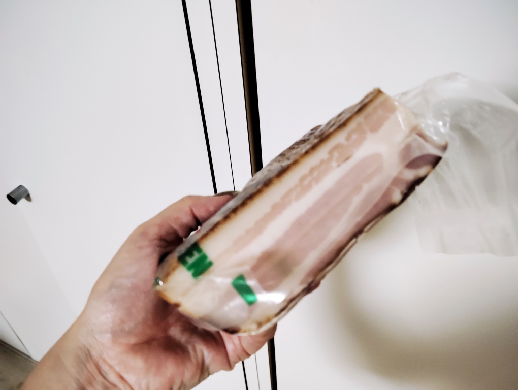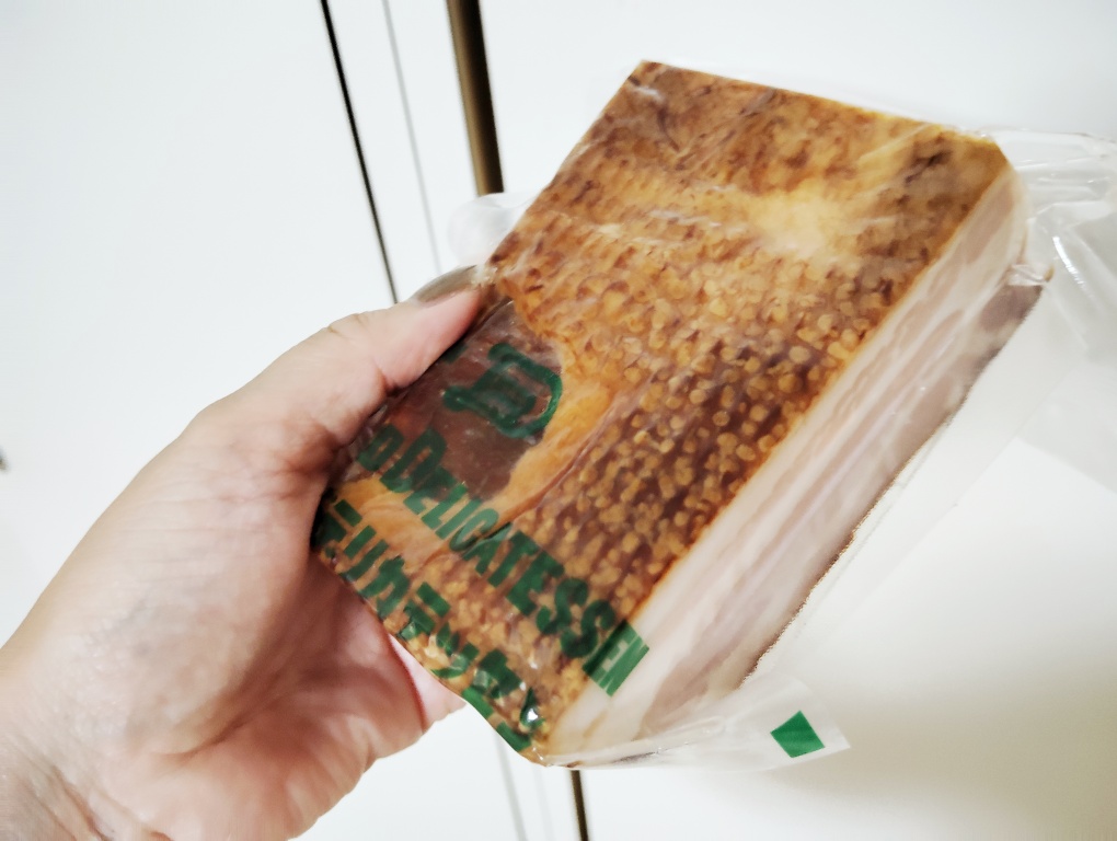 この厚み。早速家に帰ってベーコンステーキやらサンドイッチやら楽しみましたが、このしっかりとした脂。切り方が厚すぎると、最初はおいしい~!ってなるんだけど、すぐに胃がムカムカします(笑) にしむらで食べたあの厚さ、大きさは老舗によって計算されたベストバランスなのだなと思いました( *´艸`)