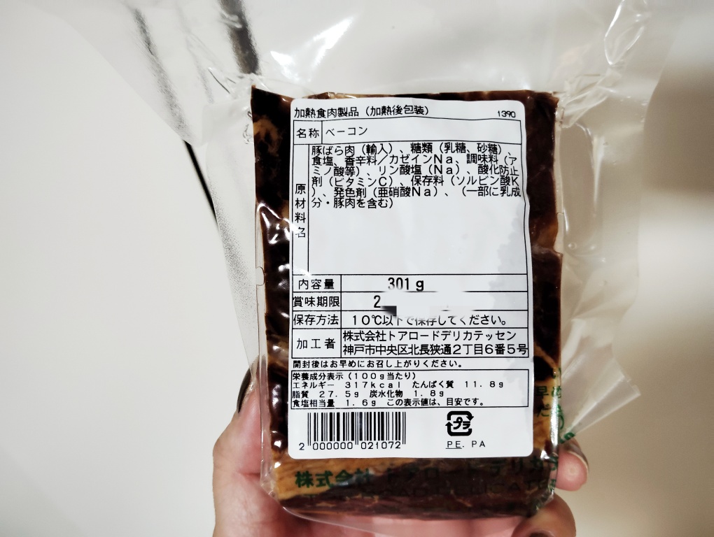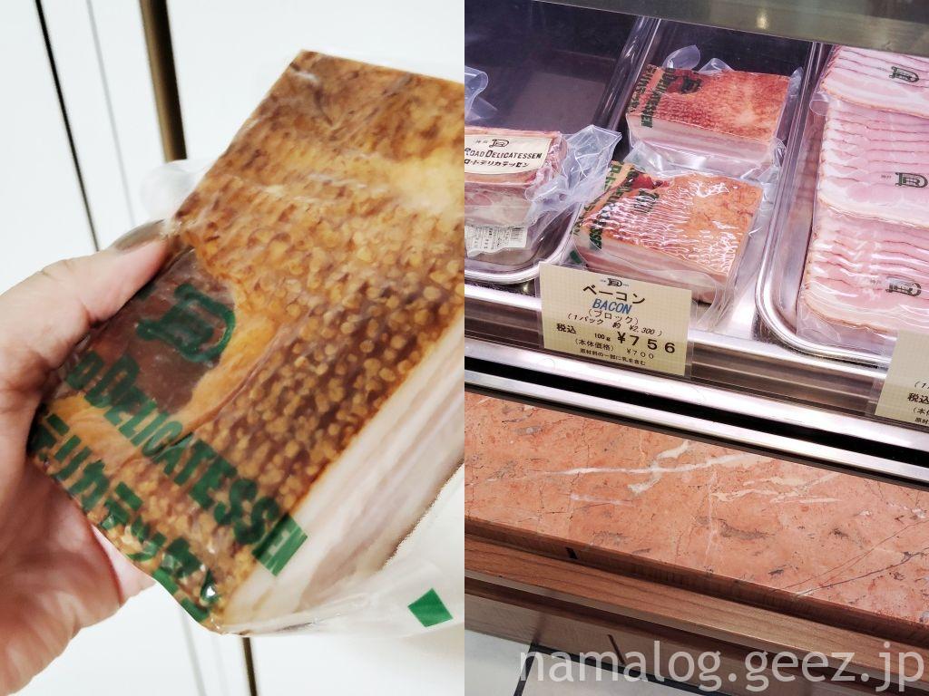 1年前に、にしむら珈琲で初めてモーニングをしたとき、パンの上にいるベーコンがとてもおいしかったのが印象的で、あのベーコンはどこのだろう?と思ってたんですけど、地元の友人が「トアロード・デリカテッセン」の物だと教えてくれました。それで今回、大丸神戸の地下にあるトアロード・デリカテッセンのお店でベーコンを買っていくことにしました。昭和24年創業の老舗で、ここのお肉を使っているレストランは神戸にいくつもあるそうです。ベーコンやソーセージ、ローストビーフ、スペアリブなどいろいろ。