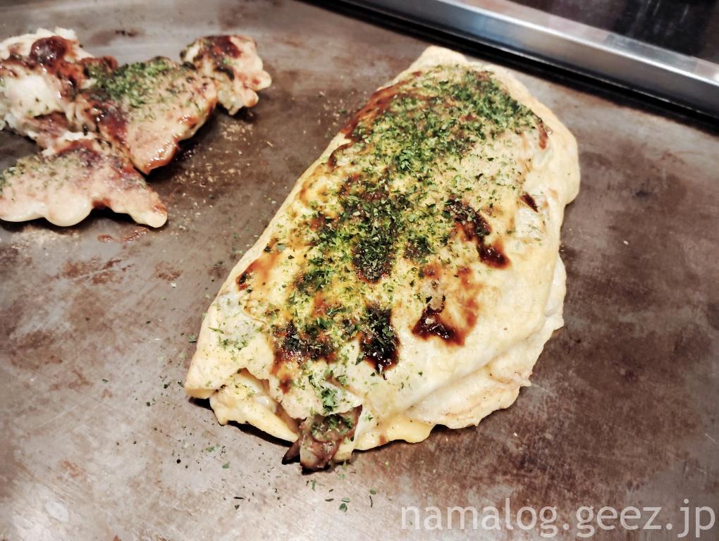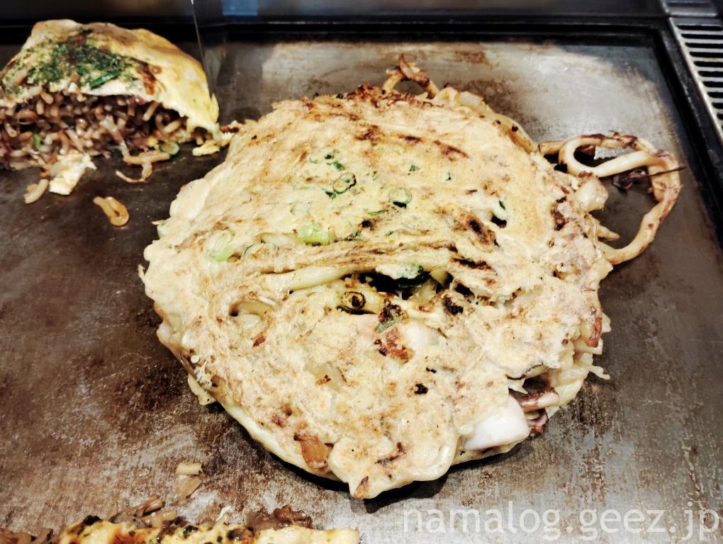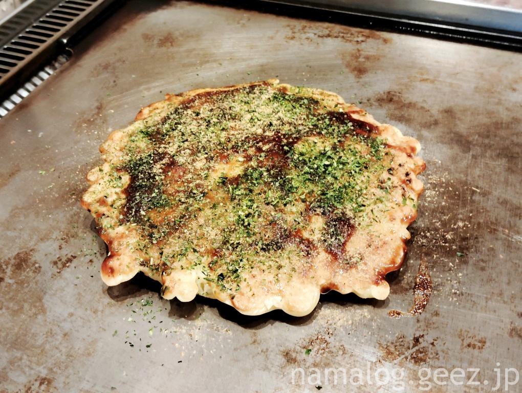 豚お好み焼き(680円)は基本中の基本。今回も注文しました。(*’ω’*) 外側はカリッと香ばしく手中はふんわり。