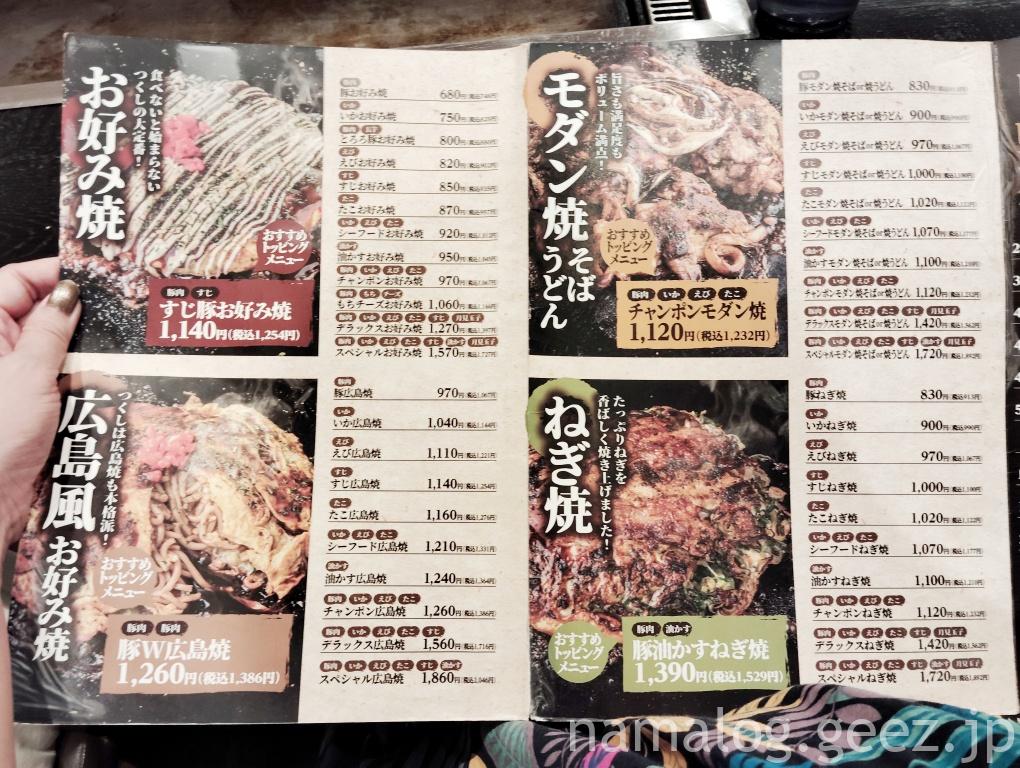 つくしは、メニューがとっても豊富。関西のお好み焼き以外にもなぜか広島風お好み焼きもあります。