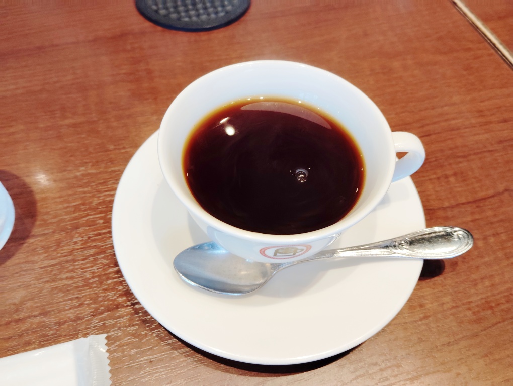 席について、メニューを見て店員さんに注文、後会計のシステムなので、お水を持ってきてもらってからメニューを見てアメリカンコーヒー(680円)にしました。3人で4人がけの席に座ったんですけど、テーブルは小さめ。デザートやフードもあるけれど、3人でがっつり食事をしようと思ったらテーブルのキャパがギリギリって感じです。加えて席間隔も狭いので、ちょっと窮屈な感じ。店員さんとお客さんがしょっちゅうバッティングしてて大変。