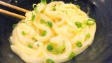 これが卵と加えて混ぜた後のうどん。生卵をまとったもちもちのうどん。ブラックペッパーのスパイシーさがアクセントになってとても美味しい!