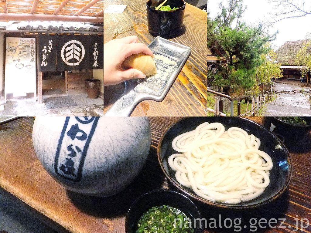 ことでんバスのうどんバスツアーを利用して、讃岐うどんで定評のあるお店のひとつ、わら家へ行きました。昭和50年創業の、比較的老舗のうどん屋さん。かずら橋で有名な徳島県・祖谷から移築した古民家を利用したお店でとっても素敵なんです