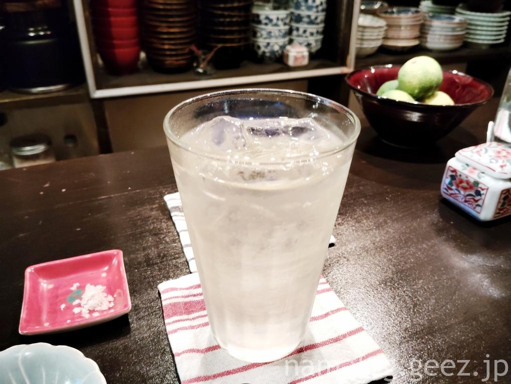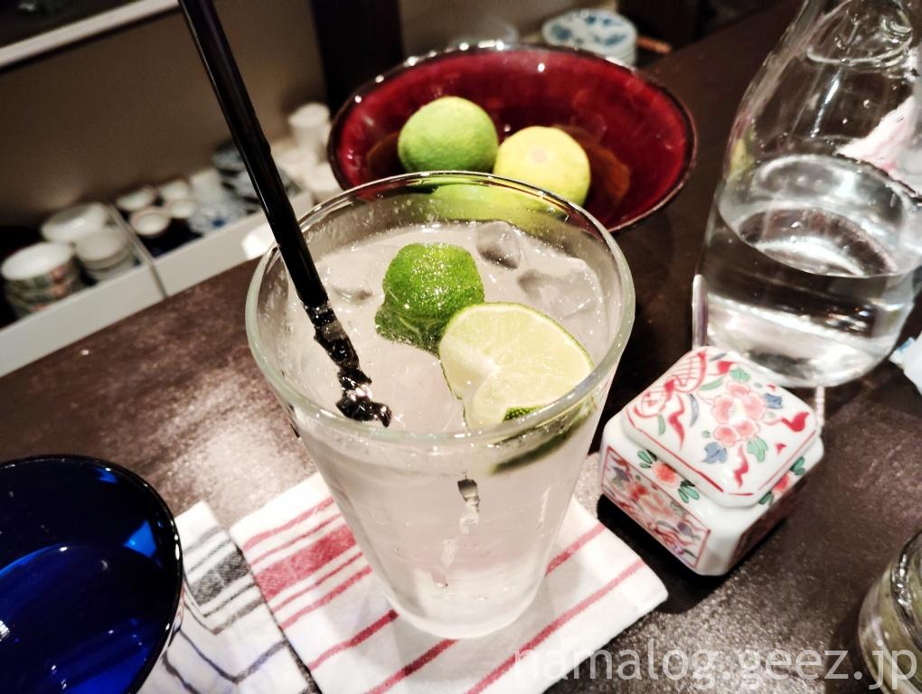 目の前にあったかんきつが気になり、聞いてみると、「へべす」とのこと。見た目だけではわかりませんね(*’ω’*) これを丸ごと入れたへべすサワー(600円)をいただくことに。さっぱりとしておいしい!