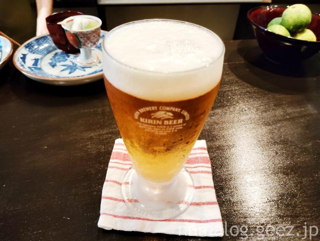 まずは生ビール(600円)を注文。このサイズ感がちょうどいいですね。
