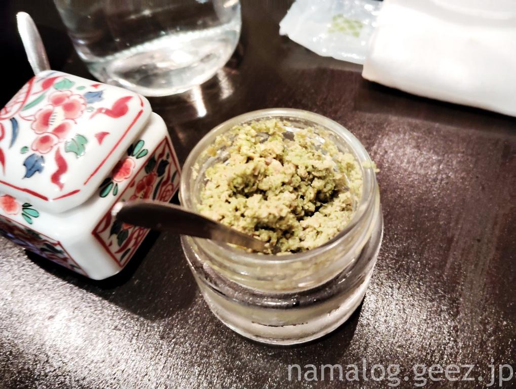 この自家製ぶどう山椒ペーストがおいしくて。ついついつけすぎちゃう。これを1瓶平らげてしまった常連さんのお話を聞いて、「うんうん」と納得する反面、そんなに立食べて大丈夫なのかと心配しちゃいました。