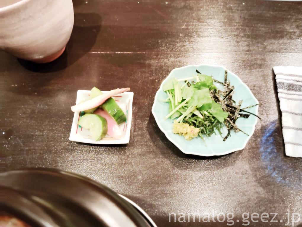 釜めしには薬味と香の物がつきます。薬味での味変はもちろんぶどう山椒ペーストもぴったり。