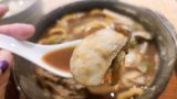 蓋を開けてみると御覧の通り。牡蠣が見えます。山本屋本店で食べた牡蠣の味噌煮込みうどんに比べてかなり雑多な感じ。玉子もしっかりめに火が通ってます(笑) あちらは盛りつけがぴしっとしてましたし玉子もほぼ生でした。